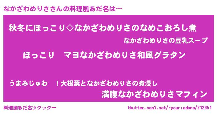 | 男性向けラノベタイトル風あだ名 | 『この素晴らしい世界になかざわめりさを!』 |