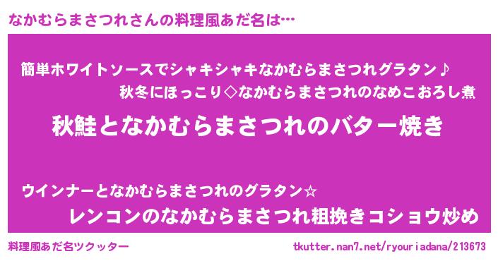 | 意味不明あだ名 | 『永久保存なかむらまさつれ』 |