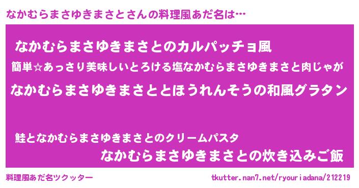 | 女子向けラノベタイトル風あだ名 | 『なかむらまさゆきまさとの玉の輿計画!』 |