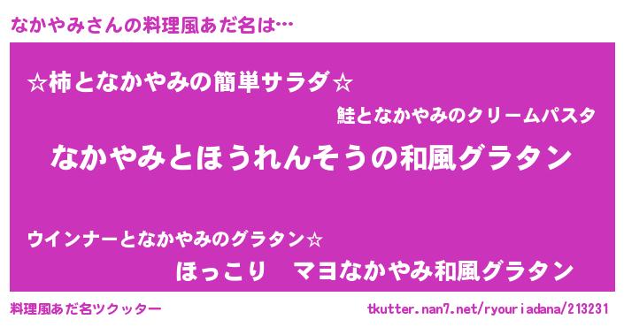 | ヘコむあだ名 | 『なまこ酢』『なかやみ(笑)』 |