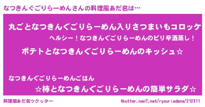 | ポケモン風あだ名 | 『ヒナツキングゴリラーメン』『ナーツイ』 |