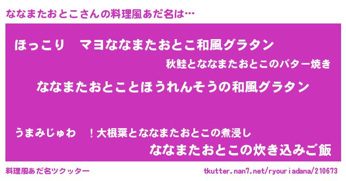| ヒーロー風カッコイイあだ名 | 『仮面ナナダー』『ネオナナマタオトコ』 |