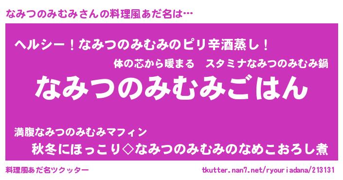 | 胡散臭い通販商品みたいなあだ名 | 『ガンによく効く冬虫夏草…その名も「なみつのみむみ」』 |