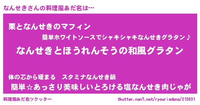| ヘコむあだ名 | 『なんせき(遠い目)』『なんを』 |