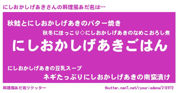| ヘコむあだ名 | 『にしおかしげあき(小並感)』『にしっちょ』 |