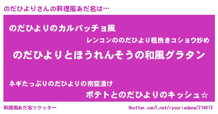 | 胡散臭い通販商品みたいなあだ名 | 『あなたにだけ特別に提供する100年もののヴィンテージワイン…その名も「のだひより」』 |