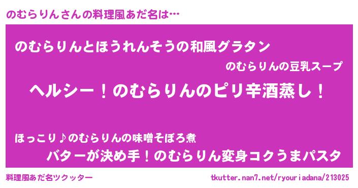 | 男性向けラノベタイトル風あだ名 | 『Re:のむらりんから始める異世界生活』 |