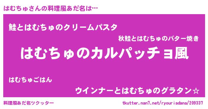 | 意味不明あだ名 | 『住所不定無職はむちゅ(1歳)』 |