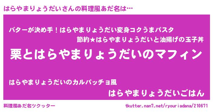 | 胡散臭い通販商品みたいなあだ名 | 『100人中100人が認めたマグネット磁石…その名も「はらやまりょうだい」』 |