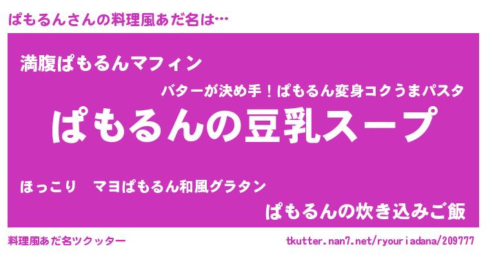 | ヘコむあだ名 | 『ぱもを』『ぱもるん(笑)』 |