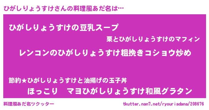 | 女子向けラノベタイトル風あだ名 | 『ひがしりょうすけなんてお断りですっ。』 |
