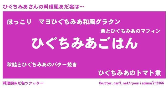 | ヘコむあだ名 | 『ひぐちみあ(笑)』『ひぐもー』 |