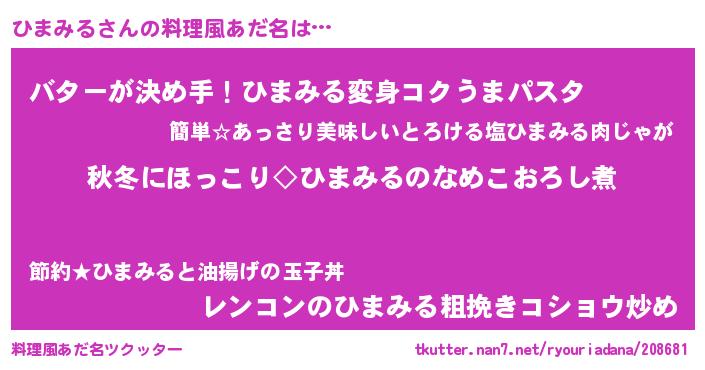 | ヘコむあだ名 | 『ひまみる(小並感)』『ひまにー』 |