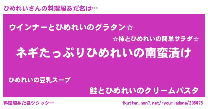 | 自動車の名前っぽいあだ名 | 『ヒメティマ』『ヒスラー』『ヒンR』 |