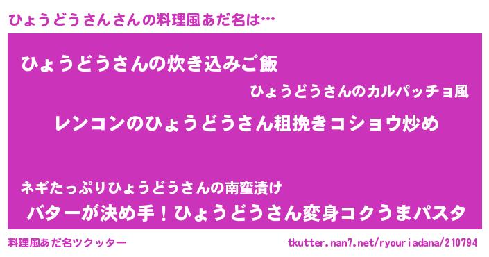 | 女子向けラノベタイトル風あだ名 | 『ひょうどうさんアンティーク』 |