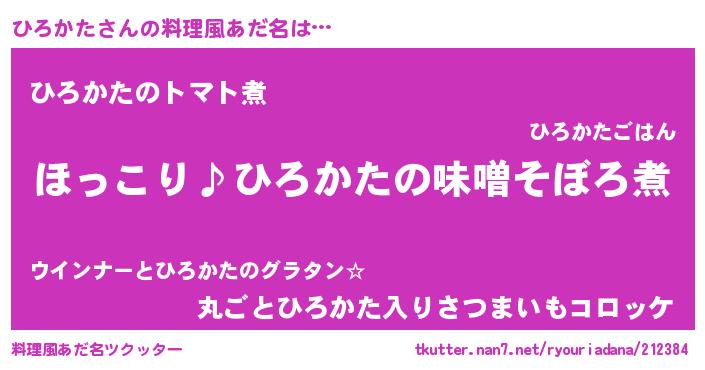 | 男性向けラノベタイトル風あだ名 | 『ひろかたの憂鬱』『魔弾の王とひろかた』 |