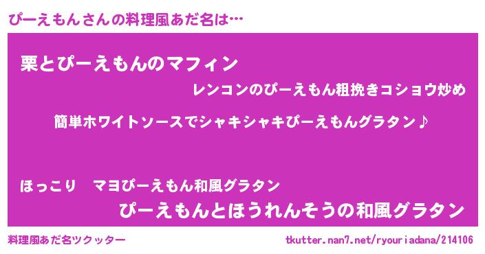| ヘコむあだ名 | 『ぴーぷりん』『ぴーえもん(笑)』 |