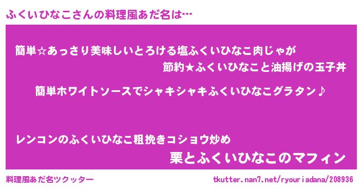 | 男性向けラノベタイトル風あだ名 | 『ふくいひなこの嫁は女の子じゃないと思った?』 |