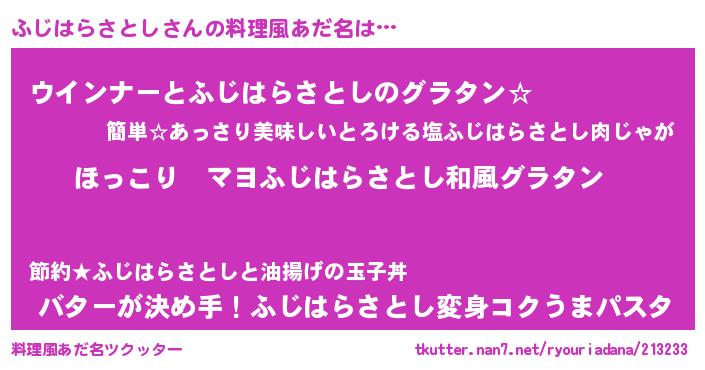 | 意味不明あだ名 | 『住所不定無職ふじはらさとし(86歳)』 |