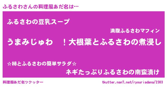| 女子向けラノベタイトル風あだ名 | 『ふるさわの婚約者』 |