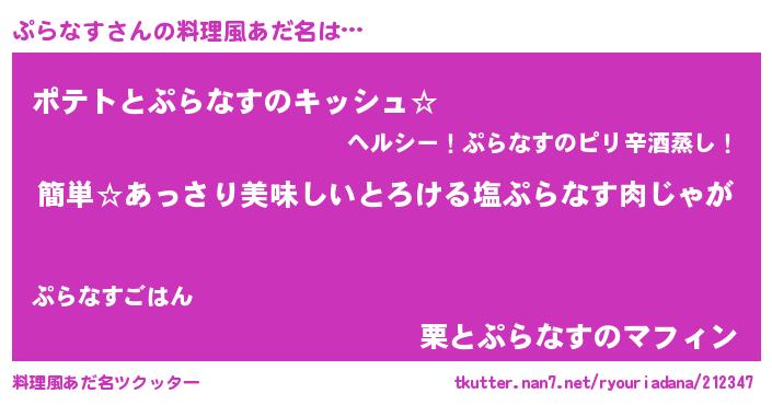 | ヘコむあだ名 | 『ぷらなす(震え声)』『ぷらを』 |