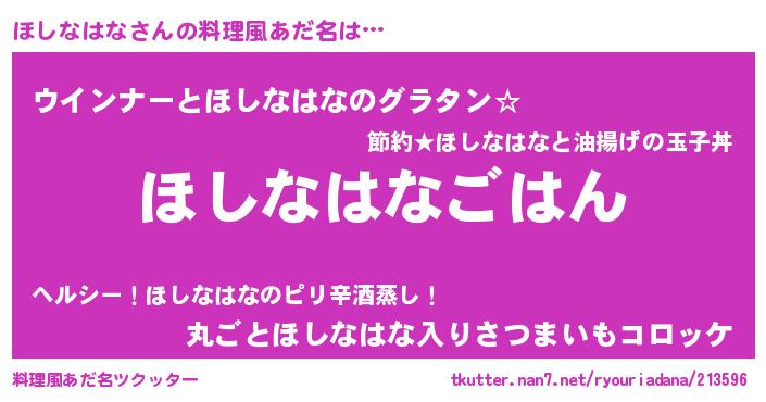 | 恥ずかしいあだ名 | 『ほしっちょ』『プリティーほしなはな』 |