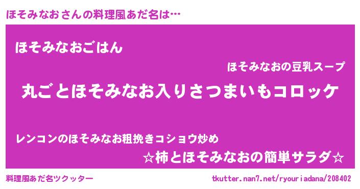 | 意味不明あだ名 | 『住所不定無職ほそみなお(81歳)』 |