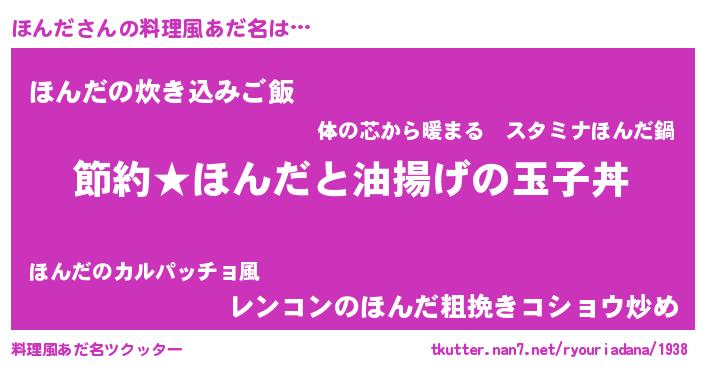 | ヒーロー風カッコイイあだ名 | 『スーパーホンダ』『サイバー戦士ホンダ』 |