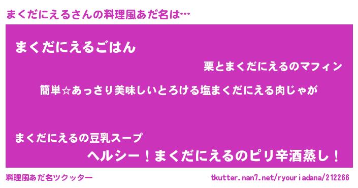 | ヘコむあだ名 | 『まくだにえる(笑)』『まくっぺ』 |
