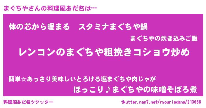 | 女子向けラノベタイトル風あだ名 | 『まぐちやなんてお断りですっ。』 |