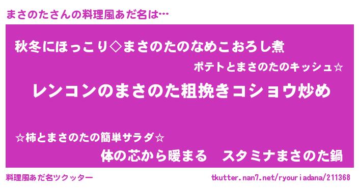 | ピコ太郎風あだ名 | 『ピマ十郎』『マサ次郎』『ママ太郎』 |