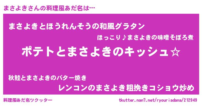 | 男性向けラノベタイトル風あだ名 | 『まさよきの嫁は女の子じゃないと思った?』 |