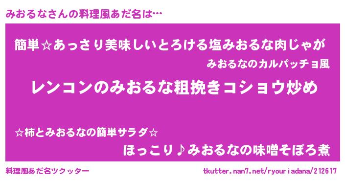 | 意味不明あだ名 | 『自称みおるな』『永久保存みおるな』 |