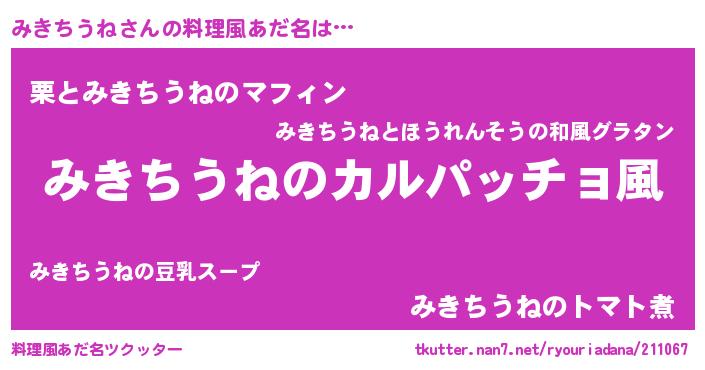 | 欧米人風あだ名 | 『ダレノガレみきちうね』 |