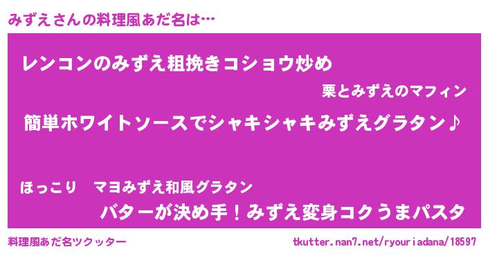 | ヘコむあだ名 | 『みずぷりん』『豆乳』『みずにゅー』 |
