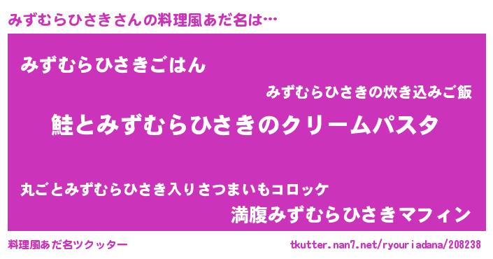 | ヘコむあだ名 | 『みずむらひさき(小並感)』『酢こんぶ』 |