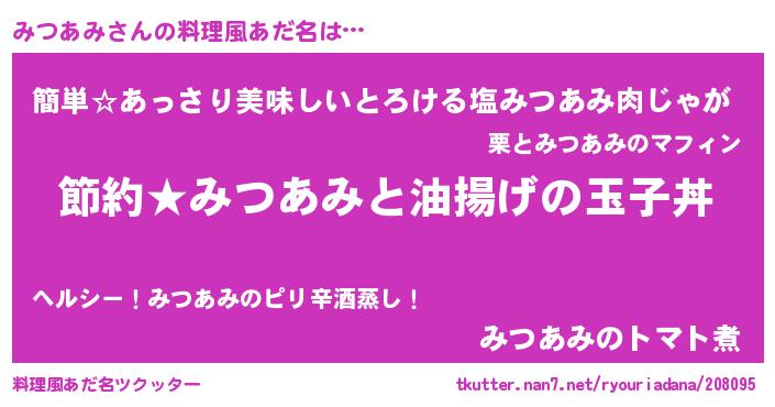 | 意味不明あだ名 | 『ペロリンみつあみ』『永久保存みつあみ』 |