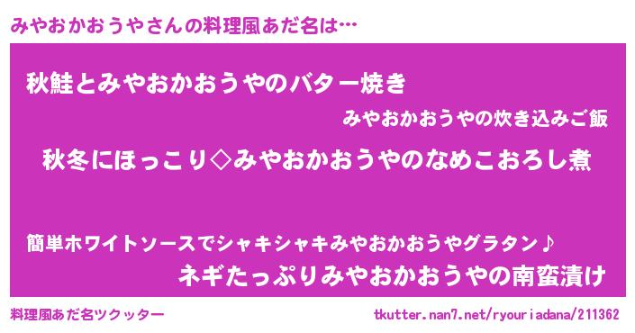 | ヘコむあだ名 | 『みやおかおうや(遠い目)』『みやにー』 |