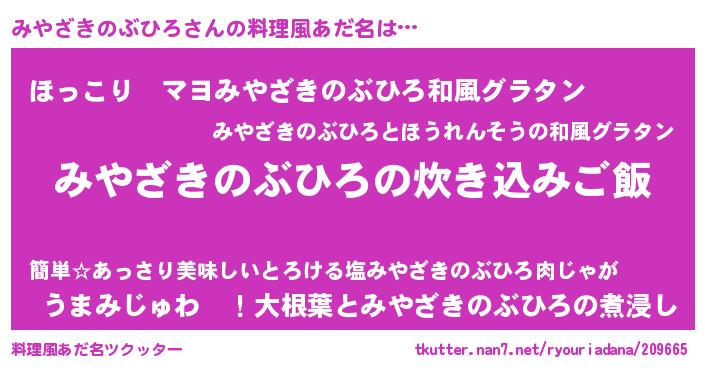 | 欧米人風あだ名 | 『みやざきのぶひろ・ステッグマイヤー』 |