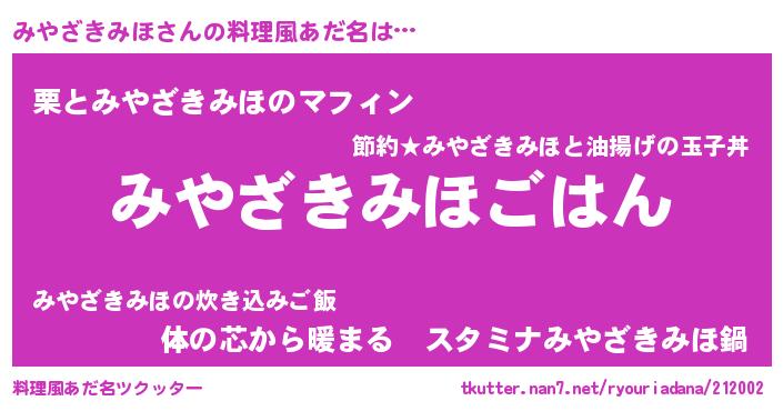 | 男性向けラノベタイトル風あだ名 | 『ミヤザキミホスレイヤー』 |