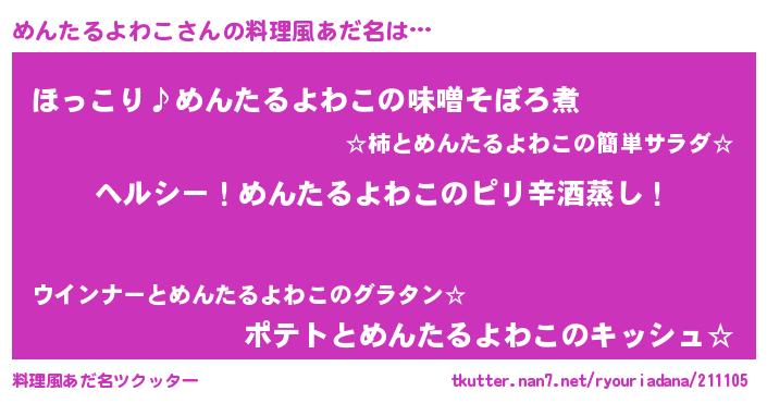 | 意味不明あだ名 | 『自称めんたるよわこ』 |