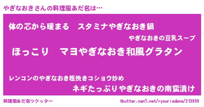 | 意味不明あだ名 | 『住所不定無職やぎなおき(98歳)』 |