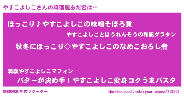 | ヘコむあだ名 | 『やすにゅー』『やすこよしこ(小並感)』 |