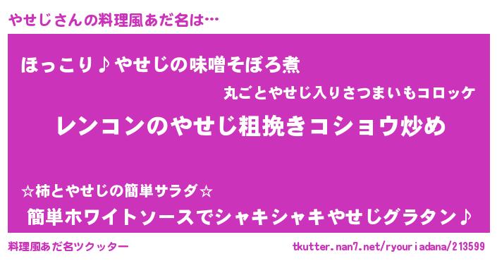 | 意味不明あだ名 | 『自称やせじ』『ペロリンやせじ』 |