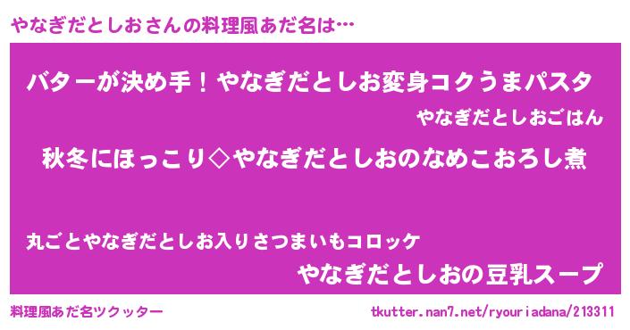 | 意味不明あだ名 | 『眠気覚ましガムやなぎだとしお味』 |