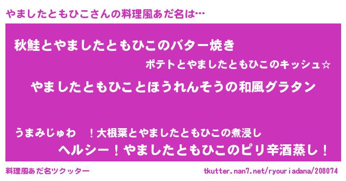 | 可愛いあだ名 | 『やまぷりん』『やましたともひこママ』 |