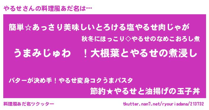 | 胡散臭い通販商品みたいなあだ名 | 『運命の人と巡り会える高級そうな壺…その名も「やるせ」』 |