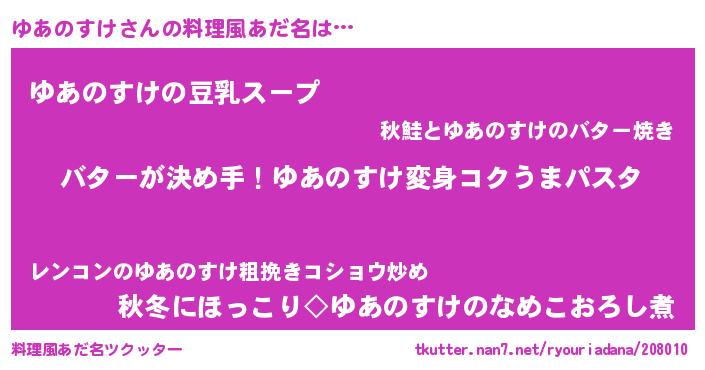 | ポケモン風あだ名 | 『ユックウザ』『ヒユアノスケ』 |