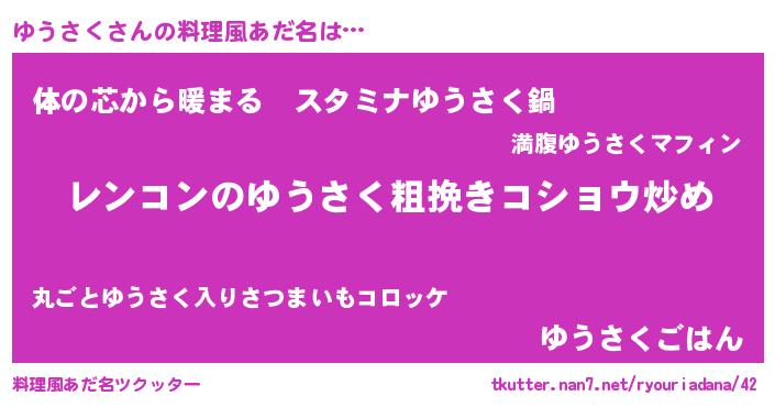 | ファンタジー風あだ名 | 『ゼユウトゥ』『エターナルユウサクー』 |