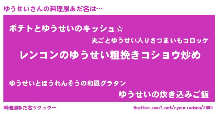 | ヒーロー風カッコイイあだ名 | 『サイバー戦士ユウセイ』『天弓騎士ユウ』 |